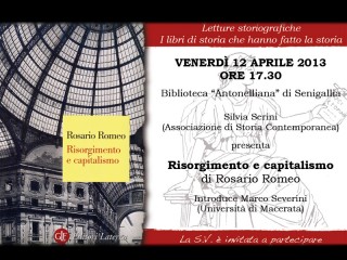 Venerdì 12 aprile Silvia Serini presenta "Risorgimento e capitalismo" di Rosario Romeo