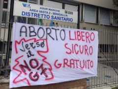Striscioni all'ospedale e al consultorio di Senigallia per SSN laico, pubblico e gratuito