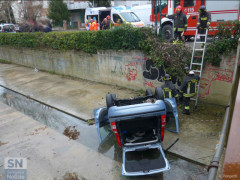 Senigallia: auto va fuori strada e finisce nel Fosso Sant'Angelo - FOTO