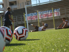 Il calcio torna al Bianchelli dopo il covid con la ripresa della preparazione dei vigorini, accolti da un eloquente striscione