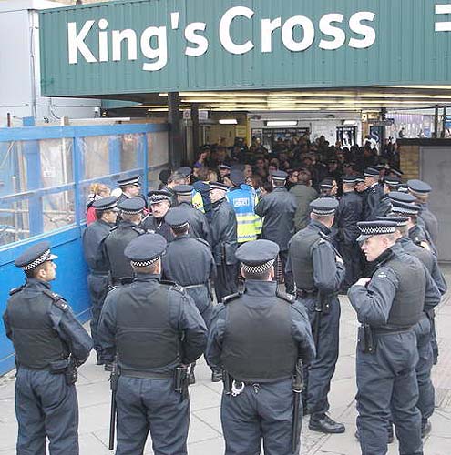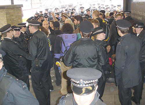 Domenica 17, come tutti, ci avviamo per prendere parte al grande corteo finale, ma quello che ci aspetta sono arresti preventivi. La polizia vuole arrestare coloro che hanno parlato durante l’occupazione del palco delSFE. Nascono urti sempre più pesanti, dentro il treno, nella stazione, sopra le scale mobili, fino a spingerci contro un muro e poi circondarci con l’antisommossa.Durante gli urti vengono pian piano arrestati Vittorio, Andrea (italiani) e Costantino (greco). E’ importante sottolineare, che per poter trovare una scusa per arrestare Vittorio, la polizia ha costruito prove false, accusandolo di avere con se una bottiglietta contenente del liquido tossico poi rivelatosi del collirio. Questa bottiglietta, è stata raccolta in strada dalla polizia e messa in tasca a Vittorio.Nel frattempo il corteo sfilava e nessuno della delegazione italiana, parlamentari e non, si è scomodato per raggiungerci e tentare d’impedire gli arresti. Gli unici arrivati sono stati Don Vitaliano ed Haidi Giuliani.Raggiungiamo il corteo quando è in atto il comizio finale, nessuno dice niente sugli arresti, nessuno esprime la propria solidarietà, nessuno informa le migliaia di persone presenti di quello che sta facendo la polizia inglese, anzi, la polizia continuaserenamente ad arrestare persone all’interno della piazza. La gente guarda e poi continua a sventolare le proprie bandierine. Nessuno s’indigna, nessuno protesta, nessuno si ribella. Un compagno, interno al social forum italiano, ci dice chiaramente che gli arresti preventivi sono stai commissionati alla polizia dagli organizzatori del SFE, perché offesi dall’occupazione del palco avvenuta il giorno prima. Siamo increduli, hanno dato i nomi alla polizia delle persone che hanno parlato sul palco. Questo è troppo! Tentiamo di salire sul palco per denunciare pubblicamente tutto questo, ma veniamo bloccati dal servizio d’ordine del partito laburista, che trovandosi in difficoltà davanti al nostro urto, chiama a sua difesa la polizia. Alcuni di noi riescono a passare. Gli organizzatori per riportare la calma, accettano di far parlare un compagno inglese, Alessio, portavoce degli Wombles (le tute bianche inglesi), ma invece di condurlo al palco, improvvisamente, davanti agli occhi di tutti, lo consegnano alla polizia, che lo arresta insieme ad uno spagnolo. Il resto è la fuga per evitare altri arresti, l’attesa davanti alla stazione di polizia ed in serata la liberazione di tre compagni, assolti per non aver commesso il fatto! Gli altri due usciranno il giorno dopo.Sono anni che parliamo di guerra globale, d’eserciti che diventano polizia e di polizia che diventa esercito. Che parliamo di come la guerra sia ordinativa, disciplinante, pervasiva. Di come pian piano i diritti si assottigliano in nome delle emergenze, delle leggi speciali. Di come tutto serva ad un solo fine, ovvero ad imporre la paura come forma di controllo.A Londra, con le sue trecentomila telecamere sparse per la città (si è ripresi minimo 200 volte al giorno), con gli attacchi preventivi della polizia e con la sua convivenza con le burocrazie del ESF, abbiamo ancora una volta avuto conferma di tutto ciòe, soprattutto, di come avesse ragione Marcos quando, il 15 febbraio del 2003, in una lettera, scriveva: