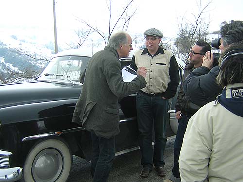 Il servizio è stato registrato alcuni giorni fa dal giornalista Guido Barlozzetti nella zona di Maiolati Spontini. La scena è davvero insolita, quasi onirica, dal vago sapore felliniano. Nel filmato si vede infatti il giornalista che dopo aver parlato a lungo del musicista Gaspare Spontini si accinge ad uscire dalla città su una fiat barchetta rossa del 1936. Fermatosi ai bordi di una strada tra le colline marchigiane innevate, intento a leggere una poesia, si imbatte in una chevrolet nera del 1953 che si ferma a pochi metri da lui suonando il clacson e catapultandolo in piena atmosfera rock’n’roll…