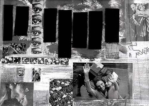 L’opera, senza titolo, eseguita su cartone telato in tecnica mista è uno dei rari documenti dell’attività pittorica di Giacomelli e rappresenta, nei suoi contenuti simbolici, una denuncia nei confronti della guerra e della violenza.