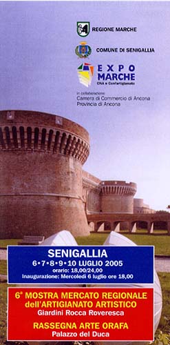 "Senigallia si caratterizza come citta’ dell’Artigianato Artistico" afferma l’Assessore Rebecchini alla presentazione della 6°Mostra Mercato Regionale dell’Artigianato Artistico che si terra’ dal 6 al 10 luglio 2005 ai Giardini della Rocca Roveresca mentre Palazzo del Duca ospitera’ la Rassegna Orafa.