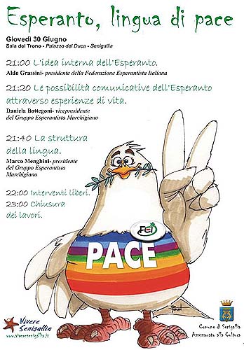 clicca per ingrandire“Esperanto, lingua di Pace” e’ il titolo di un convegno che si terra’ giovedi’ 30 giugno alle ore 21 presso la Sala del Trono del Palazzo del Duca di Senigallia.