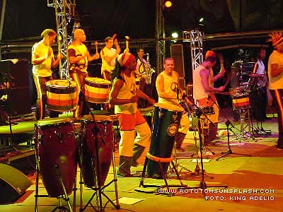 E’ infatti attesissimo il concerto degli OLODUM, vera e propria leggenda in Brasile.Gli OLODUM, amatissimi anche nel nostro paese, hanno bisogno di poche presentazioni e Senigallia sarà la tappa per il centro Italia dell’Olodum 25 years tour. Potenti tamburi, ritmi afro brasiliani e samba reggae. Dall’ultimo cd, "Olodum pela vida", ritorna nella band il cantante Tonho Matéria.Il nome Olodum è un’abbreviazione di "Olodumaré", il Dio di tutti gli dèi nella religione nigeriana Yoruba di candomblé. In sedici anni di attività a Bahia, Olodum è diventato un fenomeno musicale e culturale conosciuto internazionalmente come "un rullo di tamburo per i diritti dei neri in Brasile". Il Gruppo culturale Olodum è stato fondato nel 1979 dagli abitanti del distretto Maciel-Pelourinho di Salvador di Bahia, con l’intenzione di agevolare questi cittadini nel loro diritto di partecipare al carnevale come gruppo organizzato, cioè in "bloco" (gruppo di sole percussioni).