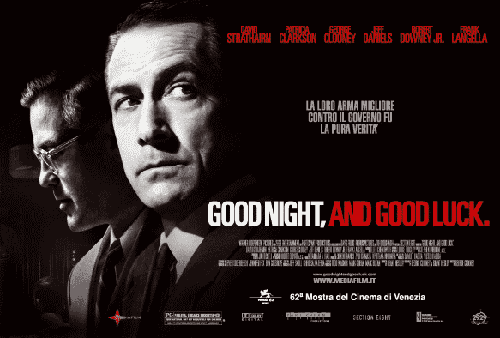 Un gruppo di giornalisti coraggiosi contro il governo degli Stati Uniti e il suo assurdo dispotico desiderio di epurare chiunque avesse delle seppur lontanissime connivenze col comunismo. La loro lotta è contro tutto e tutti, con la certezza del proprio ruolo e della colpa del loro nemico. Non vincerà nessuno, se non, forse, la verità. È questa la storia sulla quale George Clooney sceglie di costruire Goodnight, and Good Luck, abbandonando, come del resto era prevedibile, ogni divismo e preferendo piuttosto un tema impegnativo. La scommessa è, però, proprio quella di gestire l’impegno sul filo dell’ironia, di mantenere un equilibrio labile tra divertimento e riflessione: e del resto è come dire che la vera scommessa è conservare anche dietro la macchina da presa il solito ghigno beffardo che il suo pubblico ha imparato a conoscere. D’altra parte, però, il bianco e nero patinato e la musica jazz che riconduce alle atmosfere degli anni Cinquanta, non lasciano dubbi sul fatto che Clooney voglia confezionare un film vero e ambizioso: l’operazione è audace più di quanto non lasci intendere il tono soffuso e privo di reali picchi di tensione. Audace ma riuscita.