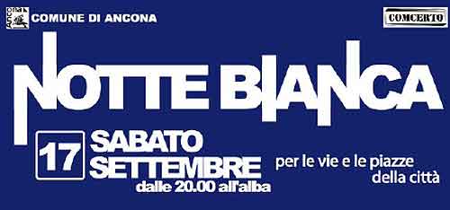 Seconda edizione per “La Notte Bianca” del capoluogo anconetano.Dopo il successo dello scorso anno la città riproporrà nella notte di sabato 17 Settembre la fortunata formula che racchiude visite guidate, musica, cultura e spettacoli fino all’alba.Si tratta un’iniziativa che renderà la città teatro di una interessante esperienza collettiva, capace di dimostrare la sua vitalità artistica e culturale, in un contesto di forte impatto sui cittadini e di grande richiamo turistico.