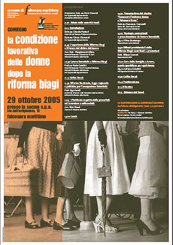 clicca per ingrandireUn convegno sulla "Condizione lavorativa delle donne dopo la riforma Biagi" è stato organizzato dal Comune di Falconara Marittima in collaborazione con l’Assessorato alle Politiche Sociali, lo Sportello Informadonna, l’Informagiovani e Centro Più.Il convegno si terrà nella giornata di Sabato 29 Ottobre presso la SACMA S.p.a., sita in Via dell’Artigianato 13 a Falconara Marittima, ed avrà inizio alle 9.00.L’intento che ha spinto l’Amministrazione Comunale di Falconara Marittima ad organizzare un convegno sulla condizione lavorativa delle donne dopo la riforma Biagi, è stato quello di creare un’occasione di confronto e di discussione critica sul mondo lavorativo e le sue trasformazioni in seguito all’applicazione della riforma stessa.