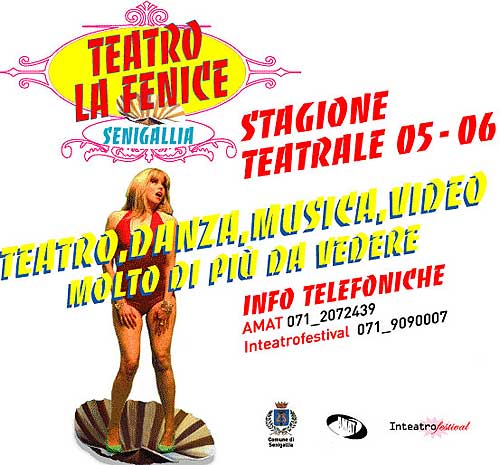 É possibile inoltre prenotare i posti telefonando a Inteatrofestival tel 071/9090007 o a Amat tel 071/2072439 oppure inviando una mail a info@inteatro.it o senigallia@amat.marche.it La prenotazione va perfezionata con vaglia postale intestato a: AMAT Corso Mazzini, 99 60121 Ancona specificando “Stagione Teatro La Fenice di Senigallia” + titolo dello spettacolo/i + posti assegnati in prenotazione. Una copia del vaglia deve essere inviata al fax dell’Amat (071/54813) entro il giorno precedente la data dello spettacolo acquistato. Per esigenze di biglietteria le prenotazioni che il giorno dello spettacolo non risultassero regolarizzate saranno rimesse in vendita. Sul sito www.amat.marche.it è possibile acquistare online i biglietti attraverso il sistema di biglietteria Charta.