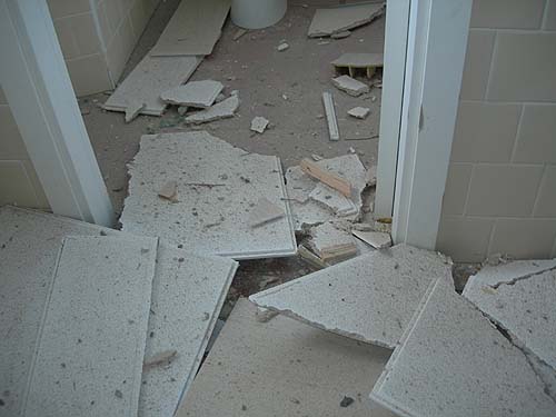scuola elementare di CastelleoneIeri mattina lunedì 28 novembre, alla riapertura delle scuole, le insegnanti si sono accorte che nel fine settimana (per fortuna…) è crollato il soffitto del bagno della Scuola Elementare di Castelleone di Suasa.