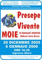 Il Gruppo di Volontariato “Carmelo nel Mondo” di Moie organizza il Presepe Vivente attorno all’antica Abbazia Santa Maria di Moie. Il Presepe si svolge nei pomeriggi del 26 dicembre e del 6 gennaio dalle 16,30 alle 20.E’ questa una realizzazione che vede attivi per la costruzione di tutto il presepe circa venti volontari e oltre centoventi figuranti. Numerose sono le scene riproposte tratte dalla vita semplice e quotidiana di artigiani, pastori, uomini e donne (dai soldati romani che garantiscono l’ordine, al fabbro, dal falegname allo scultore, dal sarto ai pastori, dai pescatori allo spaccalegna) e curate fin nei minimi dettagli. Una parte è dedicata al mondo romano con danzatrici in costume che allietano Erode. I Re Magi, in sontuosi abiti ed accompagnati dalla loro corte, offrono i doni al Bambino. La scena della Natività è rappresentata all’interno dell’Abbazia e proposta da tre famiglie di Moie che si alternano durante le serate. Gli zampognari allietano con la loro musica il percorso dei visitatori che possono anche ascoltare brani evangelici e commenti al Sacro Evento. L’ingresso è libero ad offerta. Il ricavato viene devoluto alle opere parrocchiali ed alle missioni carmelitane in Tanzania.Per informazioni www.carmelomoie.it