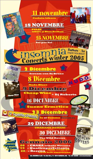 Un ricco programma di concerti previsto all’Insomnia di Barbara per quest’inverno 2005.