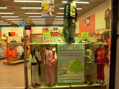 Il negozio Baby Land, che si trova al piano inferiore del centro commerciale La Fornace, (precisiamo bene la locazione…) è veramente spazioso, ma….dove è finita la bimba? Ah eccola qua, sta ammirando la collezione dei Baby Looney Tunes!