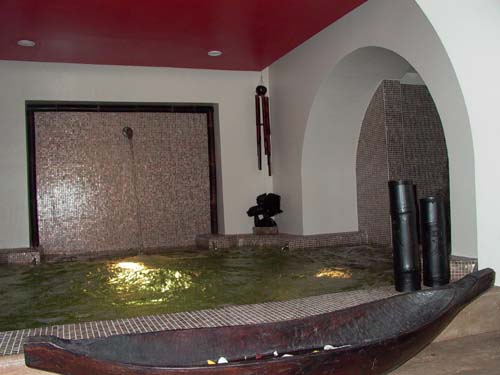 Oplà, si preme un bottone e una doccia d’acqua scroscia da una parete, un altro bottone e una “lama” d’acqua scende con decisione da un altro muro … eccezionale per la cervicale!