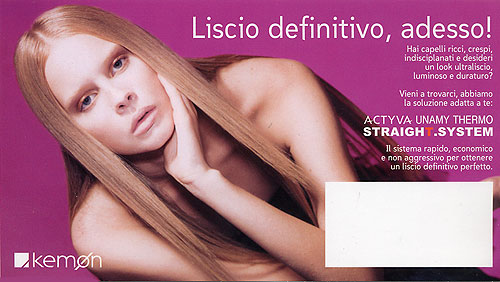 Capito? Quando laveremo i capelli… magia, saranno lisci come spaghetti! Non ci credete? Allora provate personalmente questo nuovo sistema andando a trovare Mauro nel suo salone… Caspita, oggi mi faccio una cultura… Amiche mie, non vi ho ancora detto che anche se avete i capelli trattati, con il sistema liscio definitivo, potete stare più che tranquille, il colore della vostra chioma resterà invariato!