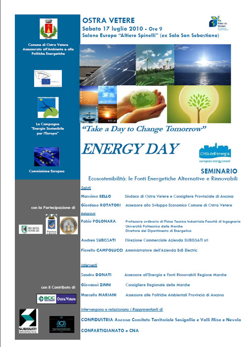 Una Giornata dedicata all’Energia, un summit di esperti, enti locali, imprese ed Associazioni di categoria rivoto a chi desidera conoscere ed approfondire i nuovi temi e le nuove tecnologie per sostenere, creare ed attuare politiche energetiche alternative, sostenibili ed innovative.
