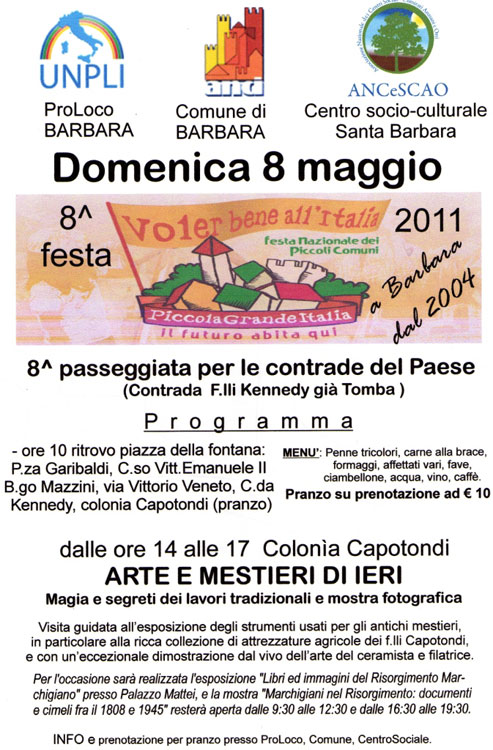 Per l’ottava volta, il Comune di Barbara aderisce all’Iniziativa di Legambiente “Voler bene all’Italia”, in collaborazione con Pro Loco, Centro Sociale Santa Barbara e ANCeSCAO.