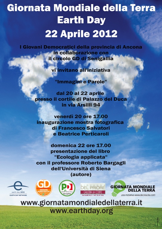 I Giovani Democratici della provincia di Ancona in collaborazione con il circolo GD di Senigallia invitano la cittadinanza a partecipare all’iniziativa “Immagini e Parole” da loro organizzata per la Giornata Mondiale della Terra, la cui edizione italiana è curata da decrescita.com e da Earth Day Network.