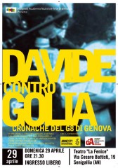 Domenica 29 aprile, alle 21.30 presso il teatro ‘La Fenice’ di Senigallia (via Cesare Battisti 19) andra’ in scena ‘Davide contro Golia – Cronache del G8 di Genova’ di Orlandelli, Gensini e Gubitosa, dialogo teatrale sulle violazioni dei diritti umani commesse dalle forze di polizia nel 2001 nel capoluogo ligure.