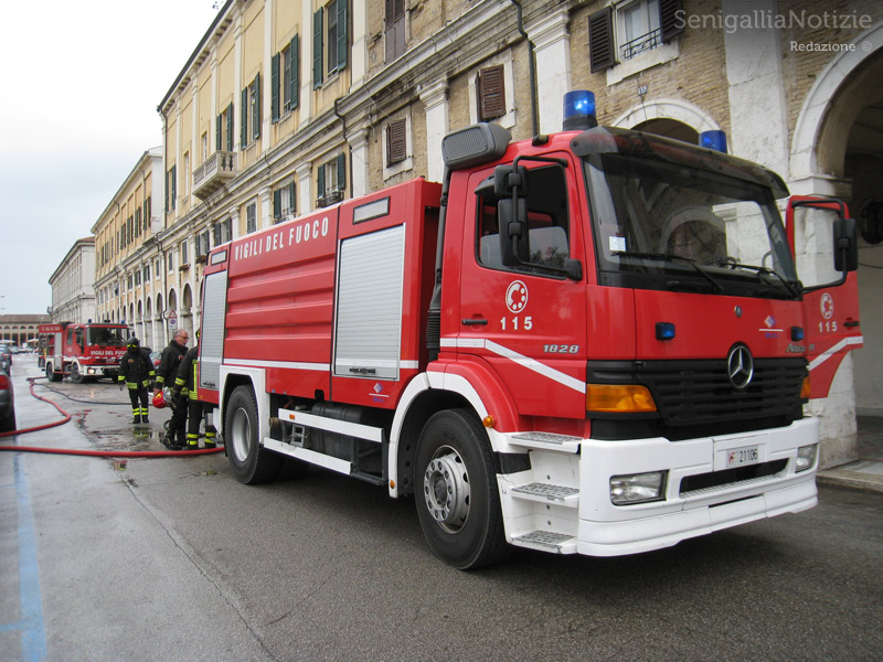 I Vigili del Fuoco impegnati nell'incendio lungo via Portici Ercolani