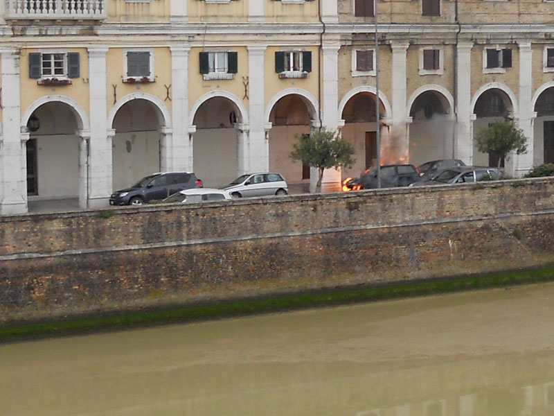 L'auto mentre viene avvolta dalle fiamme