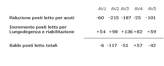La strategia generale della riforma si basa sull’incremento dell’appropriatezza nel ricorso ai ricoveri ospedalieri, attraverso la riduzione dei posti letto per acuti e la riconversione in posti letto per la riabilitazione e lungodegenza post-acuzie in coerenza con gli standards/obiettivi definiti dal Patto per la salute nazionale.