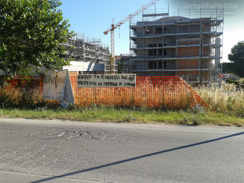 Il cantiere occupato alla Cesanella di Senigallia: striscioni