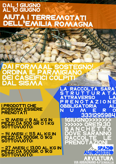 Con l’Aquila ancora negli occhi e la sua ricostruzione mafiosa in mente, in seguito al sisma che ha colpito l’Emilia abbiamo iniziato subito a ragionare su come e quale potesse essere l’aiuto più coerente e più concreto da poter portare, diffidando dalle raccolte fondi tramite degli SMS, concerti giganteschi e fondazioni bancarie. Abbiamo inserito questo ragionamento all’interno della sperimentazione sulla Filiera Corta, perché abbiamo ritenuto che questo potesse essere un meccanismo capace di scardinare l’impianto “Bertolaso” alla radice, proponendo un modello economico e di relazione sociale completamente antitetico.
