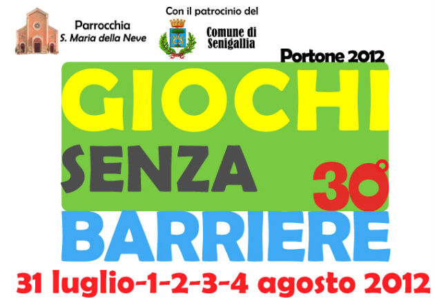 Si apriranno il 16 luglio le iscrizioni per la 30° edizione dei Giochi Senza Barriere organizzati come sempre dalla Parrocchia di Santa Maria della Neve (Portone) di Senigallia. Tante le novità – ancora da scoprire – per questo importante traguardo.I Giochi Senza Barriere compiono 30 anni e la macchina organizzativa si è già messa in moto per creare una 5 giorni assolutamente indimenticabile per i bambini che vi parteciperanno.