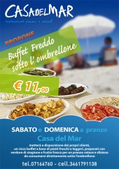 Il Ristorante Pizzeria Casa del Mar, situato sul lungomare Dante Alighieri 3 di Senigallia, metterà a disposizione dei propri clienti nel fine settimana, un ricco buffet a base di piatti freschi e leggeri.