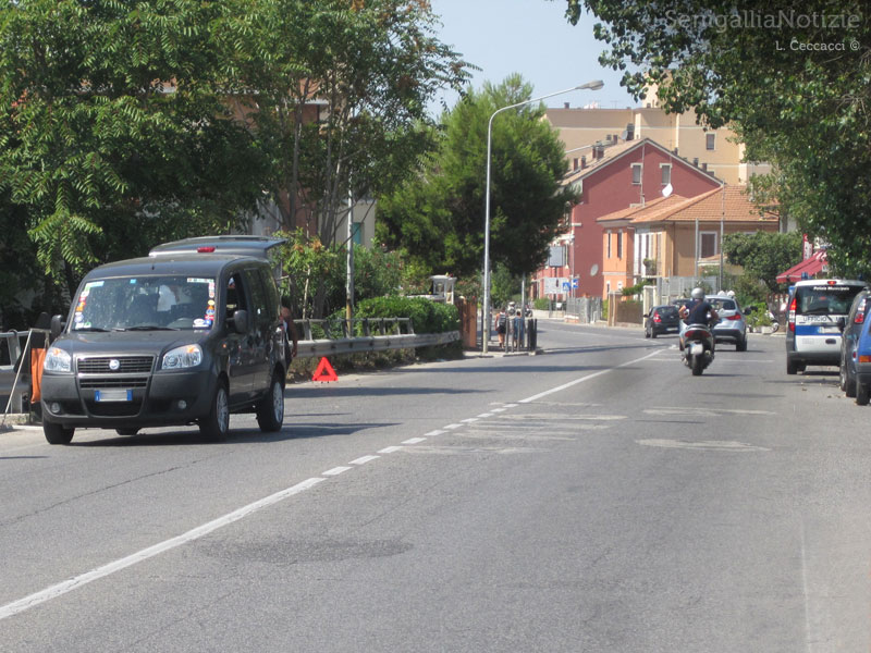 L'incidente in via Sanzio a Senigallia tra un'auto e uno scooter