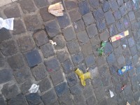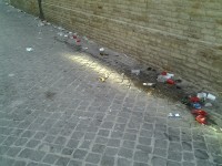 La segnalazione e le foto, che ci vengono da una nostra lettrice che ringraziamo, Maria Virginia Ferroni, certo non mostrano una situazione scandalosa, ma comunque brutta da vedere. Segno che ancora a mezzogiorno del 1 gennaio 2013, di lavoro da fare per ripulire la città di Senigallia dopo la festa di Capodanno ce n’era ancora tanto.