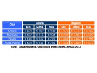 Nelle Marche: Le tariffe medie più alte a livello regionale si riscontrano ad Ancona (per gli adulti e per i neopatentati), mentre le tariffe medie più basse si registrano ad Ascoli Piceno, per gli adulti, e a Pesaro, per i neopatentati. Infine, la distribuzione dei sinistri su scala nazionale vede il dato marchigiano (2,5%) tra i più bassi a livello nazionale, superiore solo a quello di Valle d’Aosta (0,2% del totale, fonte Isvap), Molise (0,6%), Basilicata (0,8%), Trentino A.A. (1,4%), Friuli V.G. e Umbria (1,6%), Calabria e Abruzzo (2,2%).