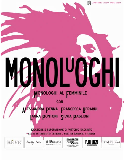 Francesca Berardi, Silvia Paglioni, Alessandra Penna e Laura Pontoni del “Laboratorio a Scena Aperta” si esibiranno al Teatro Portone di Senigallia Venerdi 01 marzo alle ore 21,00 con lo spettacolo “MONOLuOGHI” Ideazione e supervisione di Vittorio Saccinto.