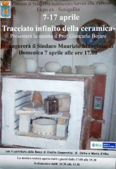 “Tracciato infinito della ceramica”.Nel titolo del manifesto c’è un gran programma: è un progetto ardito che prosegue da anni con volontà, con convinzione e con fede, dato l’impegno con il quale lavorano i frequentanti il Corso e l’Atelier di ceramica.Nuovi allievi si sono aggiunti ad arricchire il gruppo che si propone come ogni anno di far verificare dall’opinione pubblica i progressi e le mete conseguite, ma soprattutto per dimostrare quanto l’arte della ceramica sia sempre viva e dia tante soddisfazioni.