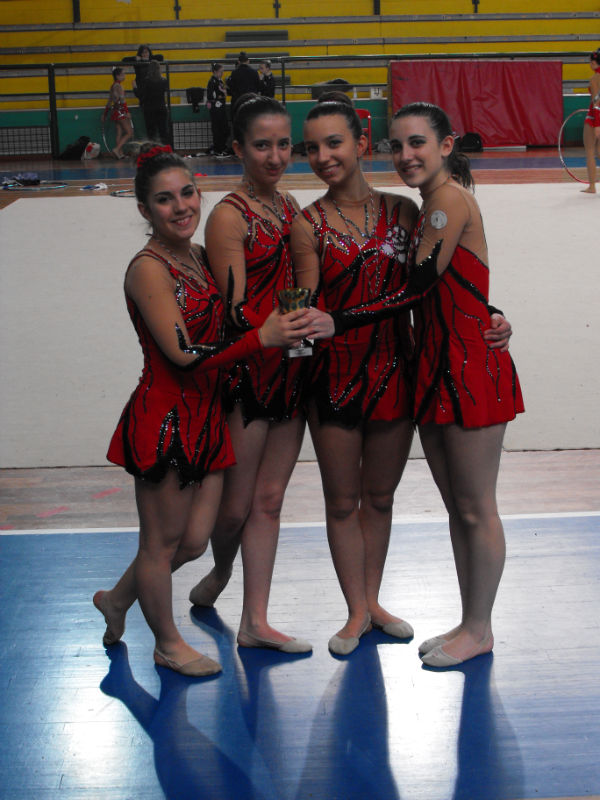 Le ginnaste protagoniste di questa giornata di gara sono: Fraboni Caterina, Pesaresi Lucia, Pierpaoli Chiara, Greganti Giorgia, Catalani Emma e Contini Nicole le quali hanno eseguito, come da programma federale, un esercizio di squadra con l’uso dell’attrezzo palla, pieno di originali collaborazioni e progressioni al corpo libero, fune, palla e cerchio dove si sono distinte per precisione tecnica e fluidità di movimento.