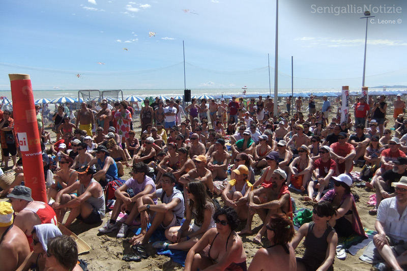 Pubblico in spiaggia per la diretta di Caterpillar AM da Senigallia