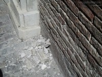 la chiesa del Carmine ha subito un distacco di alcuni frammenti di cornicione