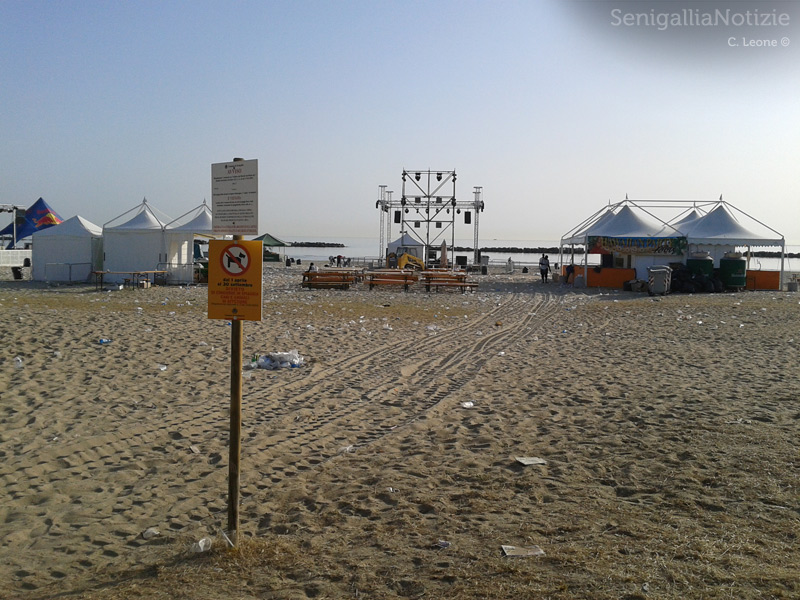 I rifiuti dopo la festa hawaiiana del Summer Jamboree 2013 a Senigallia