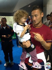 Anche il capitano della Roma, Francesco Totti, padre di una bimba che porta lo stesso nome, a fine partita si è intrattenuto con la piccola Chanel e con i suoi genitori.