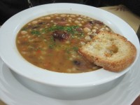 Dopo questo piacevole stuzzichino, la cena vera e propria è cominciata: a tavolo il risotto alla zucca gialla, funghi porcini e speck, e la zuppa di legumi con guancialino croccante. A seguire sono arrivati gli ottimi secondi piatti, ovvero medaglioni di filetto con salsa di olive leccino, erbe di campo saltate e patate arrostite, e la tagliata di manzo con finocchi, olive e pendolini.