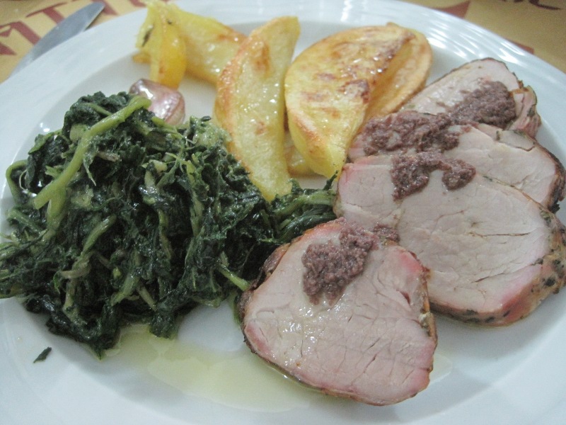 Festa dell'Olio Nuovo 2013: medaglioni di filetto con salsa di olive leccino, erbe di campo saltate e patate arrostite
