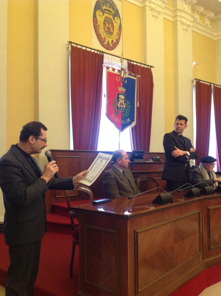 Mauro Pierfederici legge la pergamena per Giuseppe Orciari