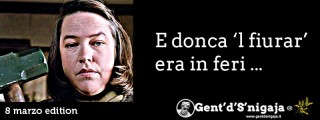 Gent'd'S'nigaja - Misery non deve morireDall’8 marzo Kahty Bates, interprete di Annie Wilkes nella pellicola di Rob Reiner, sta aspettando un mazzo di mimose, che però tarda ad arrivare e il motivo non pare convincerla. La frase in italiano si traduce: “E dunque il fioraio era in ferie…”.