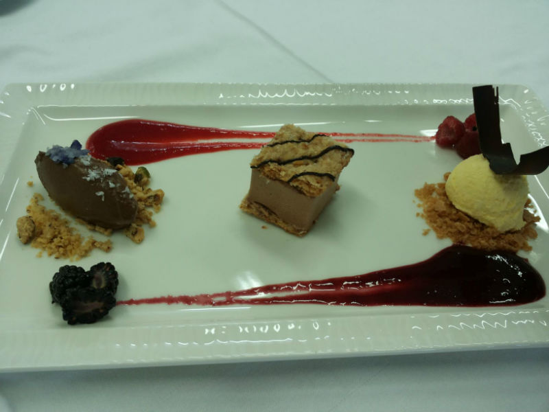 Il Panzini ha scelto di preparare un dessert composto da una mousse di cioccolato fondente con fiocchi di sale e viole candite, una mousse al cioccolato al latte in sandwich con sfogliata integrale, una mousse al cioccolato bianco con croccante al cocco e ricciolo extrafondente, il tutto contrastato da due salse di more fresche e di lamponi; titolo della creazione “Dalle more ai lamponi … giocando con il cioccolato”.