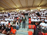 1300 alunni, tutti rigorosamente nelle loro divise di cucina, di sala bar, di ricevimento e di guide turistiche, riempivano le gradinate del palazzetto dello sport di Senigallia, in attesa di poter vedere ed ascoltare un grande chef stellato. All’ingresso di Bruno Barbieri tutti gli studenti ed i loro docenti lo hanno accolto in piedi con una calorosa “standing ovation”.
