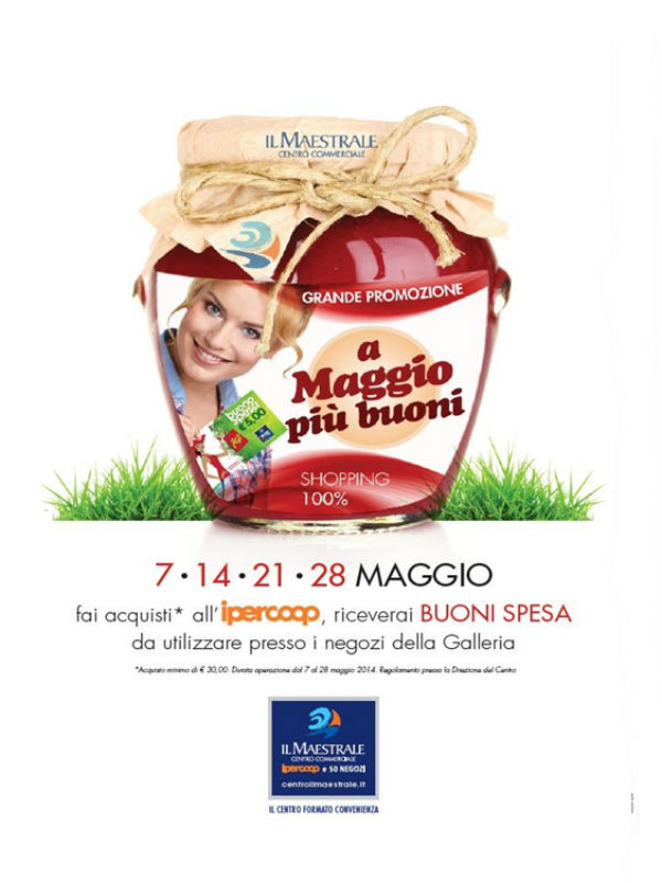 Da mercoledì 7 maggio e per tutti i seguenti mercoledì del mese, al centro commerciale Il Maestrale, tutti i clienti che effettueranno acquisti all’ipermercato per un valore minimo di 30 euro (scontrino unico) potranno partecipare alla grande promozione “A Maggio più buoni“.