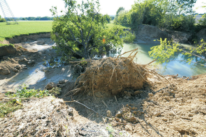 L’ incontro è aperto a tutti gli interessati (nella foto di Paolo Turchi la voragine creata dalla piena a fianco al fosso del Sambuco).