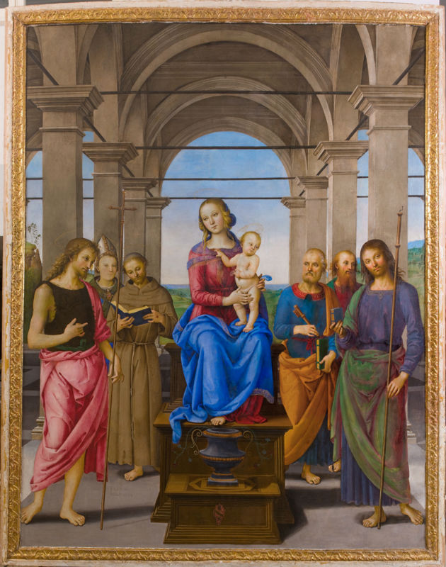 Grandissima emozione ha suscitato nei visitatori, e in particolar modo tra i cittadini senigalliesi, la tavola del Perugino “Madonna col Bambino e i Santi Giovanni Battista, Ludovico, Francesco, Pietro, Paolo e Giacomo Maggiore“, conservata nella chiesa di Santa Maria delle Grazie, e mirabilmente restaurata da Matteo e Isidoro Bacchiocca. Il numeroso pubblico ha potuto quindi apprezzare da vicino la pala d’altare eseguita uno dei maggiori artisti del Rinascimento italiano e affiancata da una serie di opere che la mettono in relazione con la produzione artistica della fine del Quattrocento, di cui è rimasta ampia testimonianza nella nostra regione.